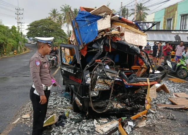 “Karena jarak terlalu dekat dan sopir truk box tidak bisa menghindar, sehingga menabrak bagian depan mobil pick up bermuatan ikan,” ungkapnya.