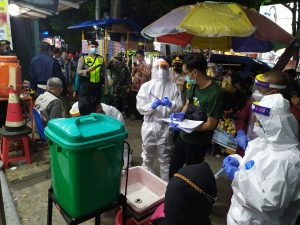 5 Personel Koramil 0822/01 Laksanakan Pos Pam Covid-19 Di Pasar Induk Bondowoso