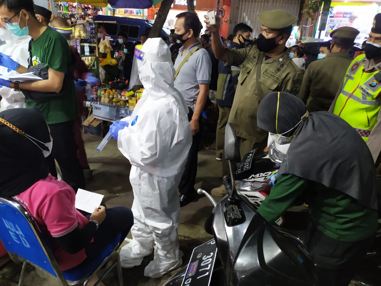 Bondowoso , Kepedulian gugus tugas penanganan Covid19 kepada masyarakat, Satgas Terpadu percepatan Penanganan virus corona (Covid-19) melaksanakan pengamanan di Pos PAM Covid-19 Pasar Induk Dabasah Bondowoso.