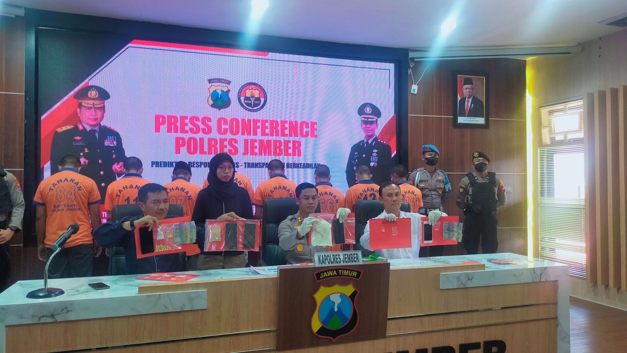 Kapolres Jember AKBP Hery Purnomo mengatakan jaringan peredaran narkoba tidak hanya di Jember, terdapat 2 tersangka yang diketahui merupakan warga Kabupaten Lumajang yakni Rio Bagus dan Ryantoro Dwi yang ditangkap di awal.