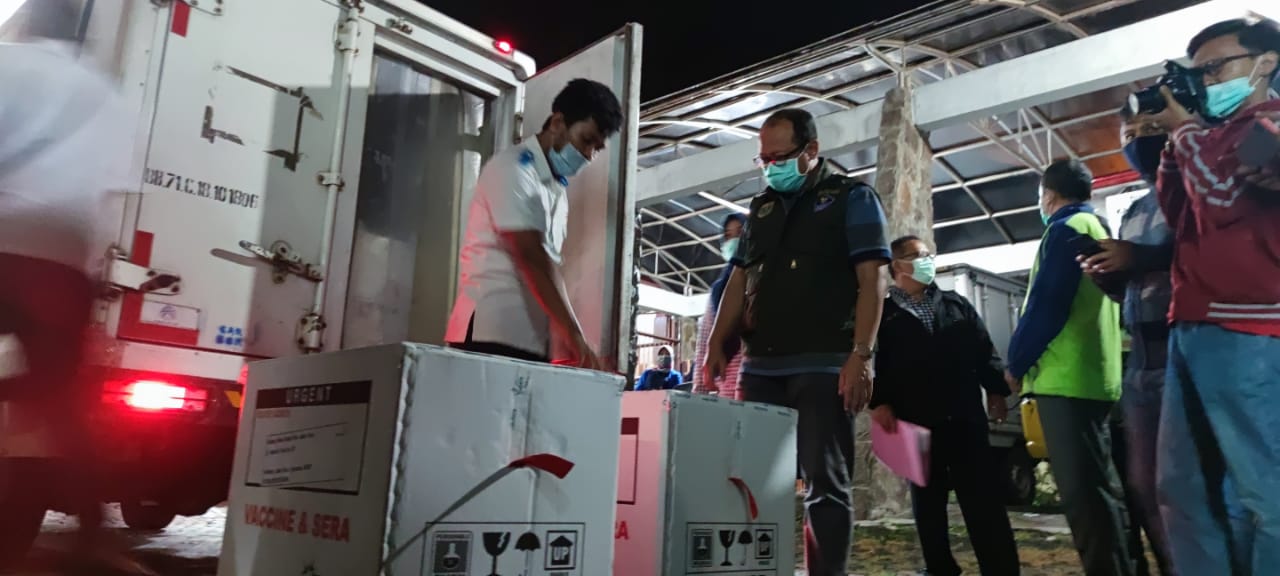 Bondowoso,Tepat pukul 1.00 dini hari Selasa,26/1/2021, puluhan botol vaksin dari Surabaya tiba di Bondowoso. Kedatangan vaksin yang dikawal ketat Palda Jatim dan Polres Bondowoso tersebut mengunakan satu mobil boksĀ dikawal dua barracuda brimob Polda Jatim.