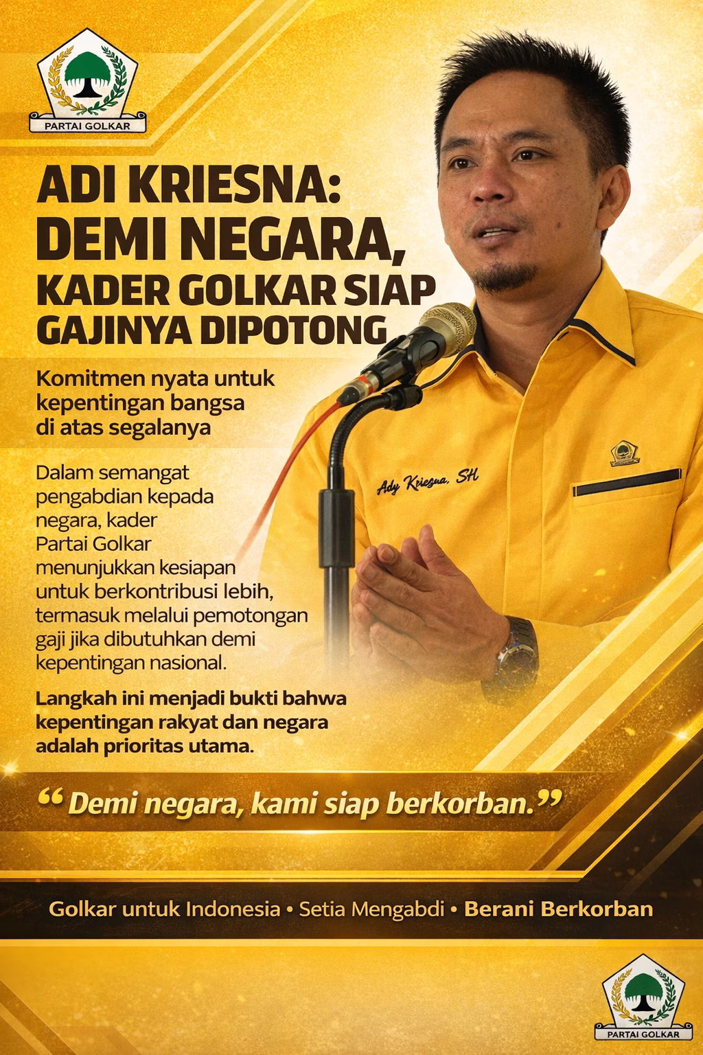 Bondowoso – Ketua DPD Partai Golkar Bondowoso, Adi Kriesna, menyatakan dukungannya terhadap langkah Sekretaris Jenderal Partai Golkar, M Sarmuji, yang menyatakan kesiapan kadernya untuk dipotong gajinya apabila negara membutuhkan.
