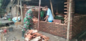 Bondowoso,Serda Epi Yunia Kirawan Babinsa Desa Pejaten gotong royong melaksanakan pengerjaan RUTILAHU bersama warga .