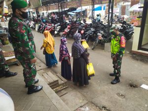 Bondowoso,Sertu Sarjono dan Koptu Zaenudin Babinsa Dabasah melakukan oprasi Yustisi Covidb-19 di Pasar Induk Bondowoso, Senin 18/01/2021.