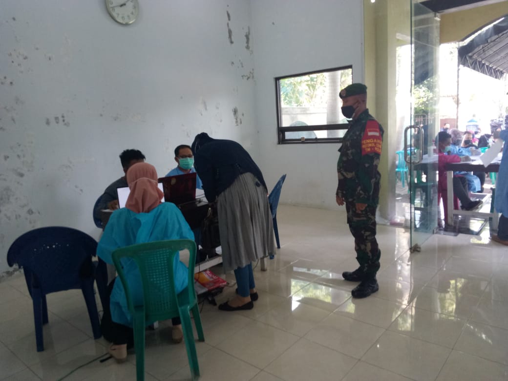 Bondowoso,Serda Ruslan Babinsa Kelurahan Kademangan memantau kegiatan vaksin covid-19 di Klinik Fatimah ,Jum’at 16/07/2021.