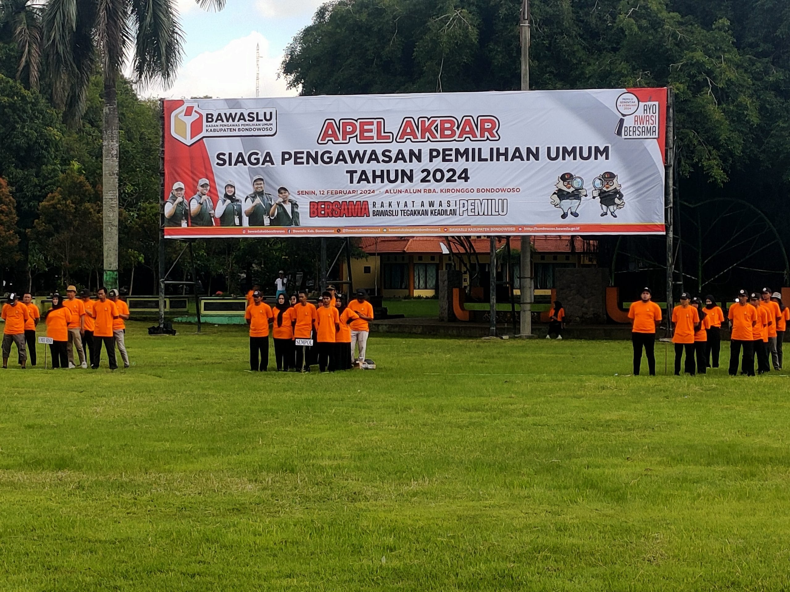 BONDOWOSO, – Bawaslu Bondowoso menggelar Apel Akbar Siaga Pengawasan Masa Tenang yang di Alun-alun RBA Kironggo Bondowoso,Jawa Timur, Senin, 12/02/2024 .