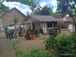 Bondowoso , Danramil 0822/01 Bondowoso Kapten Kav Sangkrah Mur Dwi Atmojo memimpin Serbuan Teritorial Rumah Tinggal Layak Huni (RITULAHU) di Dusun Lumbung Desa Kembang ,Senin 20/7/2020.