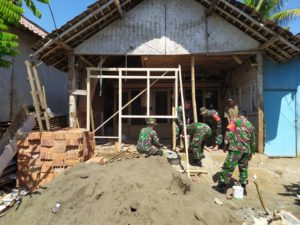 Bondowoso,Danramil 0822/01 Bondowoso Kapten Kav Sangkrah Mur Dwi Atmojo melakukan pelatakan batu pertama sebagai tanda dimulainya pembangunan RUTILAHU di Desa Pejaten, Rabu 8/7/2020
