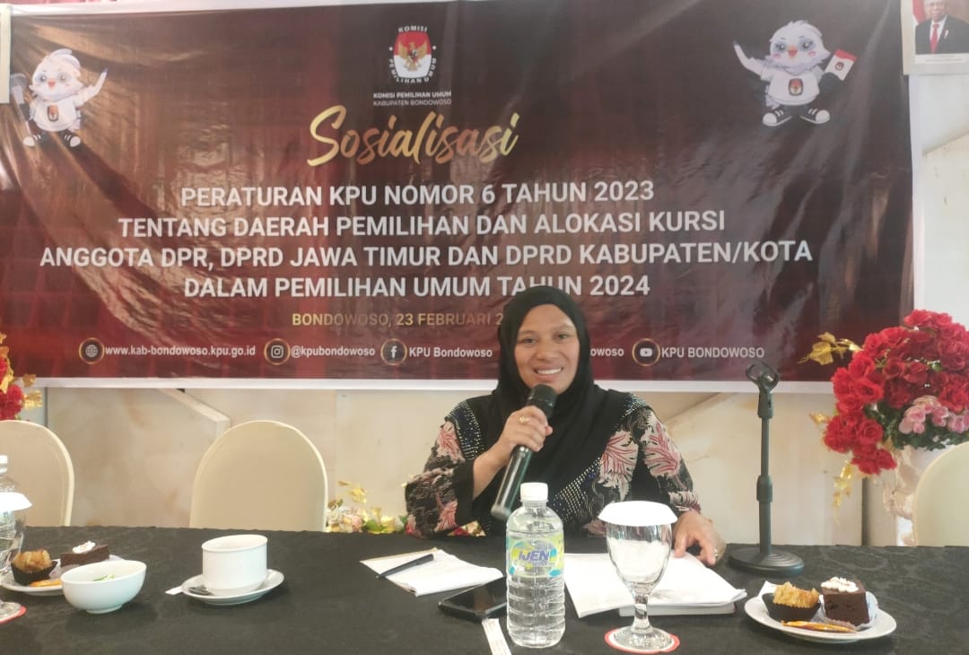 BONDOWOSO – Komisioner KPU Bondowoso Devisi Teknis Penyelenggaraan, Heniwati mengatakan bahea Daerah Pemilihan (Dapil) dan alokasi kursi anggota DPRD Pemilu 2024 di Kabupaten Bondowoso tak berubah.