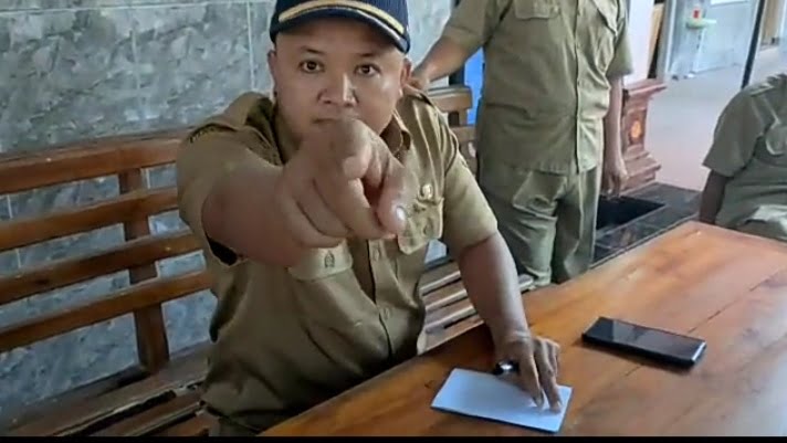 Sambil menunjuk ke kamera wartawan, dengan suara lantang Kades Kabat berkata,” mana surat kuasa hukum, sampean taat hukum nggak, kan ada pasal pendampingan”. sementara pemegang kamera sudah menunjukkan Id cardnya dan mengatakan ” saya wartawan ” berulang kali.