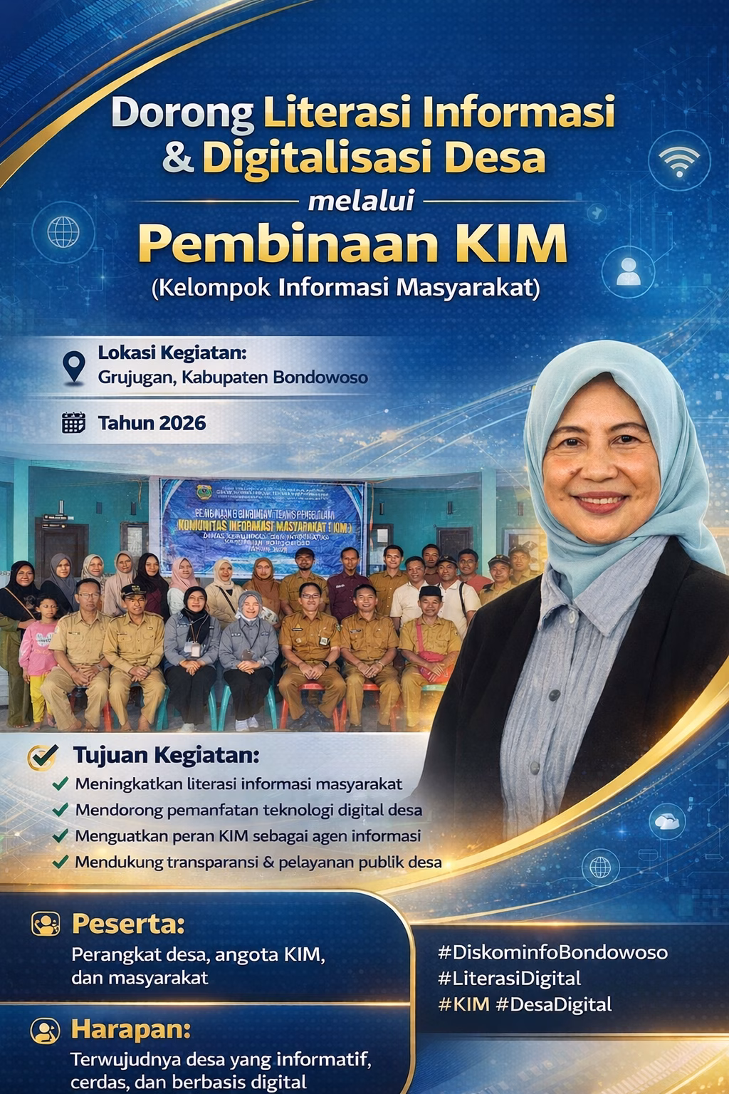 Bondowoso — Dinas Komunikasi dan Informatika (Diskominfo) Kabupaten Bondowoso terus memperkuat peran Komunitas Informasi Masyarakat (KIM) sebagai ujung tombak penyebaran informasi publik di tingkat desa.