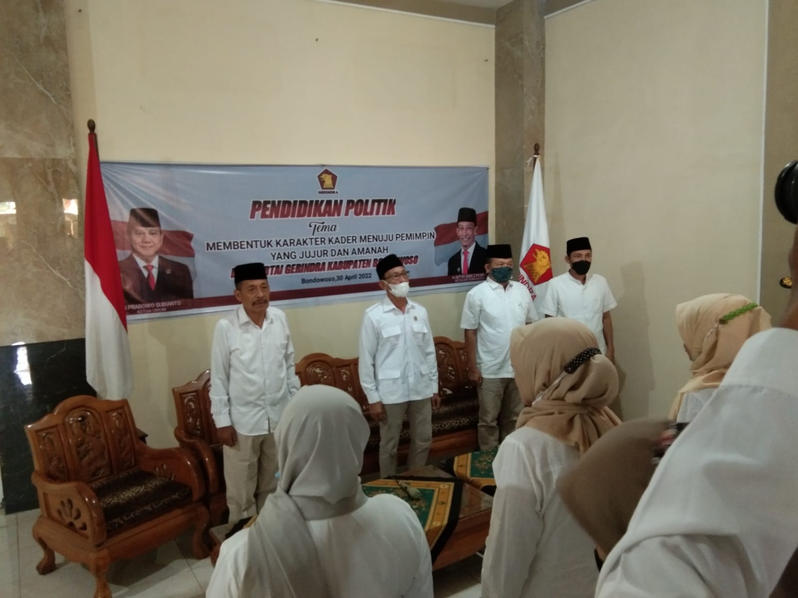 BONDOWOSO – Ketua Dewan Pimpinan Cabang (DPC) Partai Gerindra Kabupaten Bondowoso Setiyo Budi, memberikan motivasi kepada seluruh pengurus dan kader partai. Agar pada pemilu tahun 2024 mendatang dapat mememuhi target yang telah ditentukan.