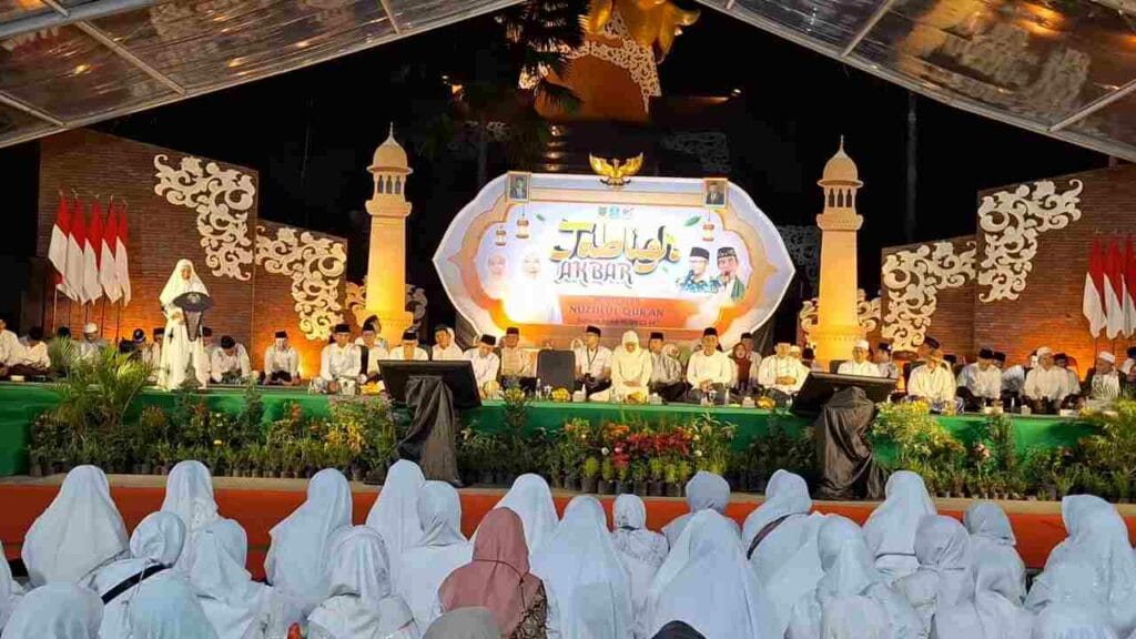 Mojokerto – Pemerintah Kota (Pemkot) Mojokerto menggelar Tabligh Akbar dalam rangka memperingati Nuzulul Qur’an Ramadan 1444 H di sisi barat Alun-alun Kota Mojokerto, Kamis (6/4/2023). Kerukunan menjadi pesan yang disampaikan Gubenur Jawa Timur, Khofifah Indar Parawansa.