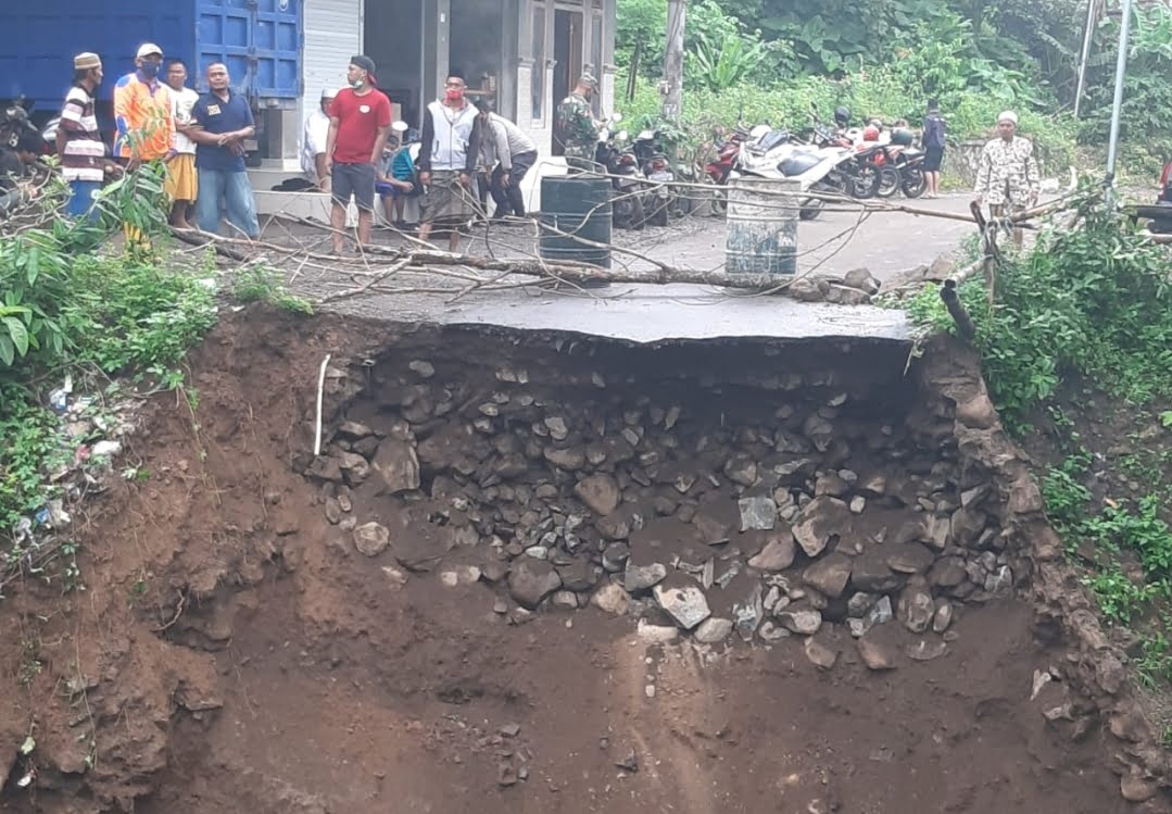 “Namun masyarakat bergotong-royong membuat jalan alternatif (darurat) dari bambu, Untuk sementara jalan ditutup untuk kendaraan roda empat,” katanya.