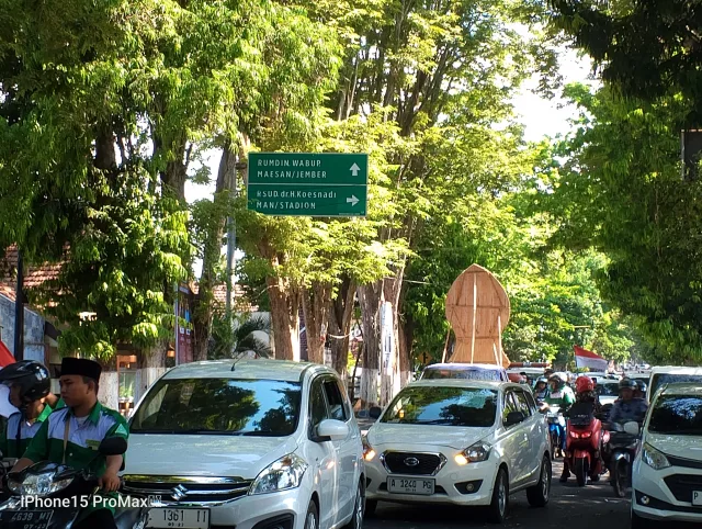 Pantauan sepanjang jalan macet karena sebelum melakukan apel Akbar di alun-alun RBA Kironggo pasukan melakukan kirab ancak agung yang diarak keliling dengan diangkut kendaraan roda empat dengan iringan motor.