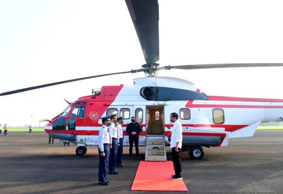 Jokowi lepas landas di Pangkalan TNI AU Atang Sendjaja, Kabupaten Bogor, dengan menggunakan Helikopter Super Puma sekitar pukul 07.10 WIB.