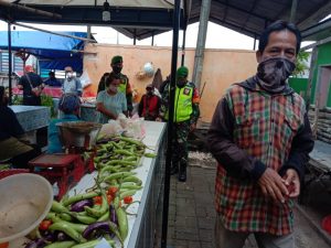 Bondowoso,Serda Faisal Fajar Armedianto Babinsa Nangkaan anggota Koramil 0822/01 melakukkan oprasi Protokol Kesehatan ( Ptokes) di Pasar Nangkaan Bondowoso sebagai wilayah binaannya.
