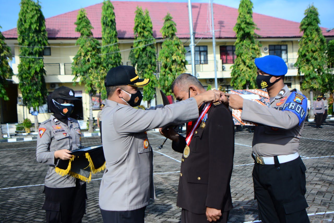 Satu anggota yang mendapat penghargaan purna bhakti adalah Kasubbag Humas AKP Nuri dan Aiptu Priyo Sutino Kanit Bintibmas Satbinmas mendapatkan kenaikan pangkat penghargaan satu tingkat menjadi Ipda.