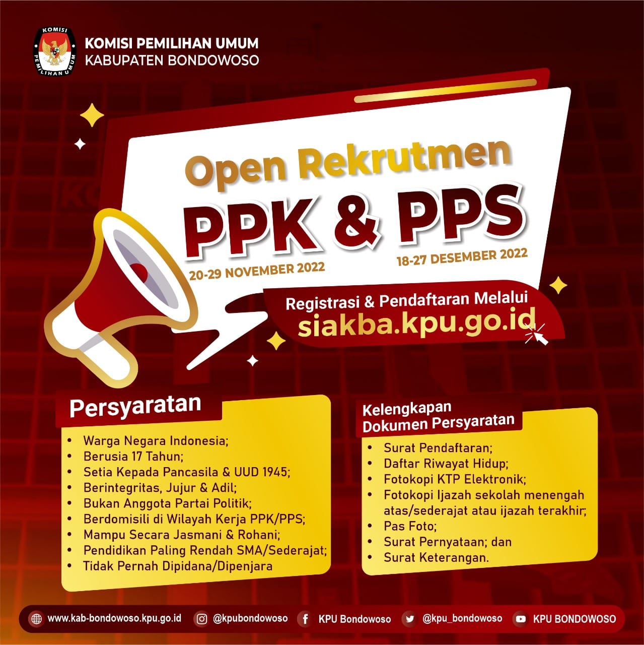 Adapun Pendaftaran PPK di Kabupaten Bondowoso sudah mulai dan bisa dilakukan sejakĀ Minggu 20 November 2022.