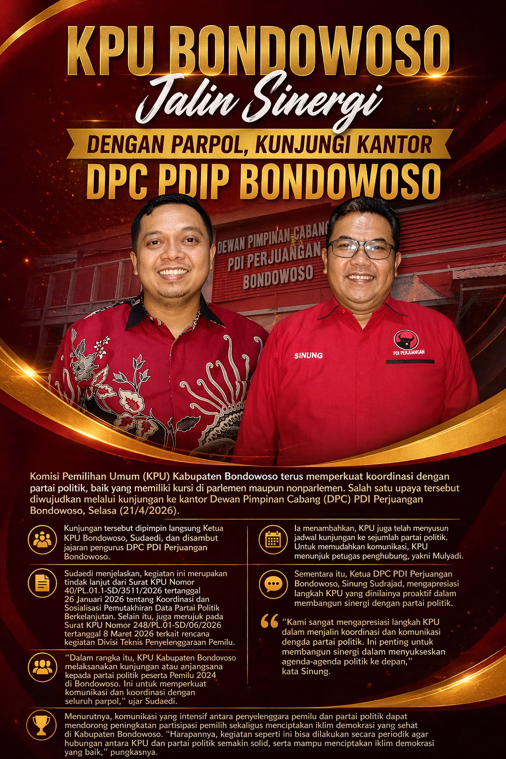 Menurutnya, komunikasi yang intensif antara penyelenggara pemilu dan partai politik dapat mendorong peningkatan partisipasi pemilih sekaligus menciptakan iklim demokrasi yang sehat di Kabupaten Bondowoso.