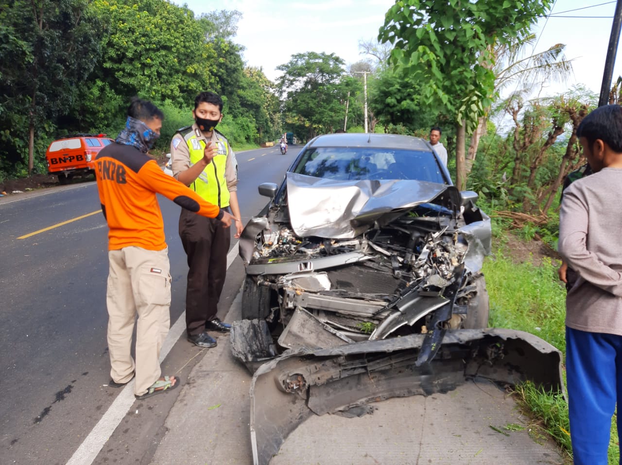 Mobil warga Surabaya bernopol L 1951 QT itu rusak berat di bagian depan.