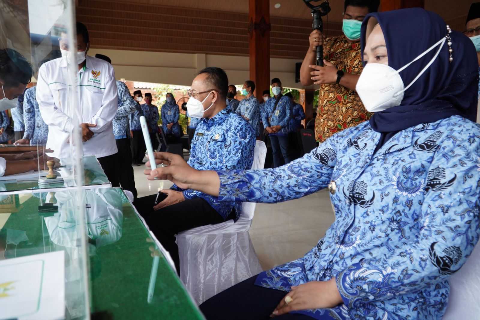 “Mungkin banyak saudara-saudara kita yang tidak bisa memenuhi kebutuhan seperti yang bisa kita lakukan. Maka sudah seharusnya, kita yang berlebih ini untuk bisa berbagi kepada mereka yang kekurangan,” ungkap Wali Kota Ika Puspitasari dalam Upacara Pembagian Zakat Fitrah KORPRI Kota Mojokerto serta pentasarufan zakat fitrah dan peringatan hari zakat nasional, di pendopo Sabha Kridatama, Rumah Rakyat Kota Mojokerto, Kamis (28/4/2022).