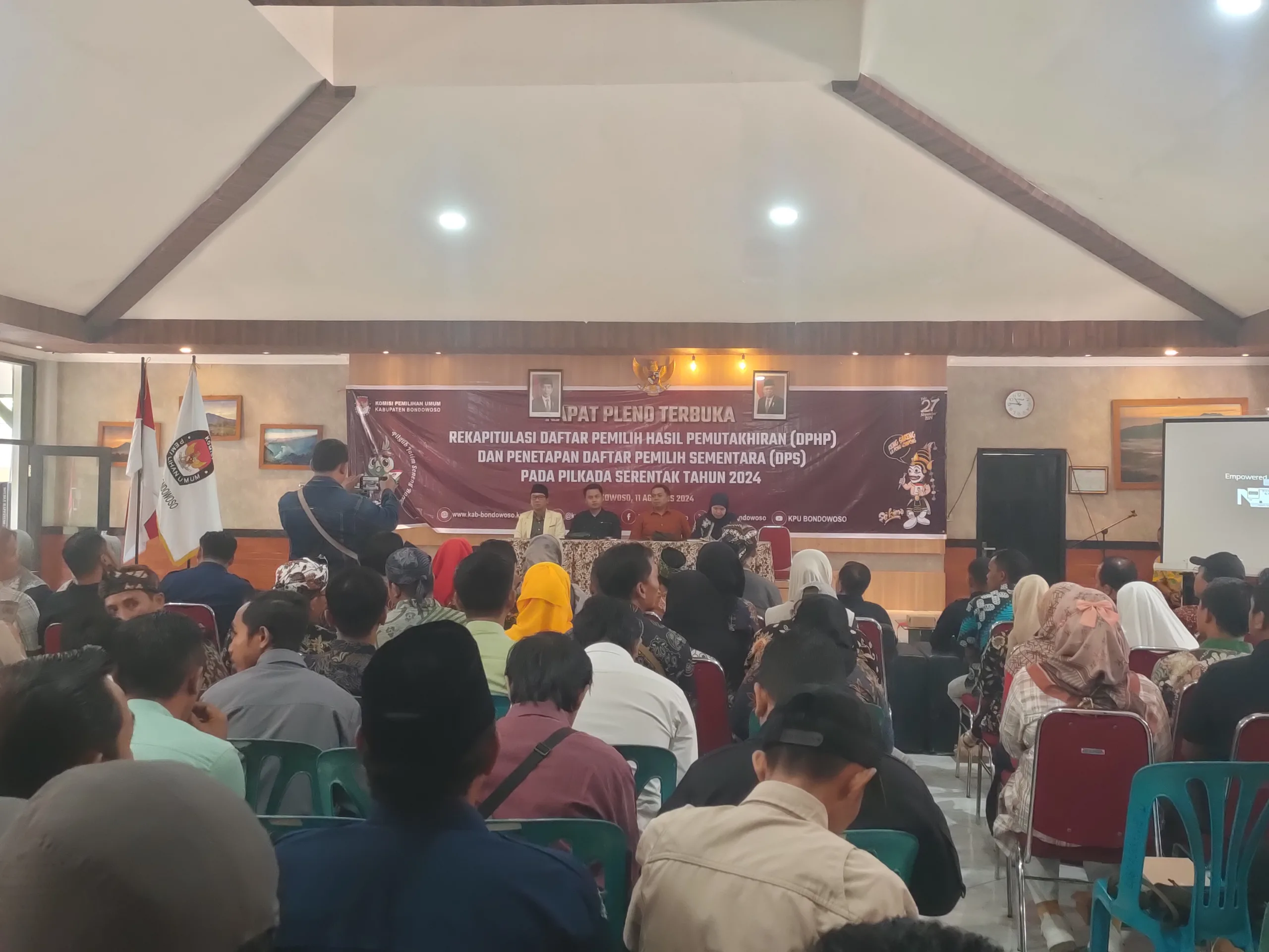 BONDOWOSO – Komisi Pemilihan Umum (KPU) Bondowoso menyelenggarakan Rapat Pleno Terbuka Rekapitulasi Daftar Pemilih Hasil Pemutahiran (DPHP) dan Penetapan Daftar Pemilu sementara (DPS) Pilkada serentak tahun 2024, di aula Disparbudpora ,Minggu 11/08/2024