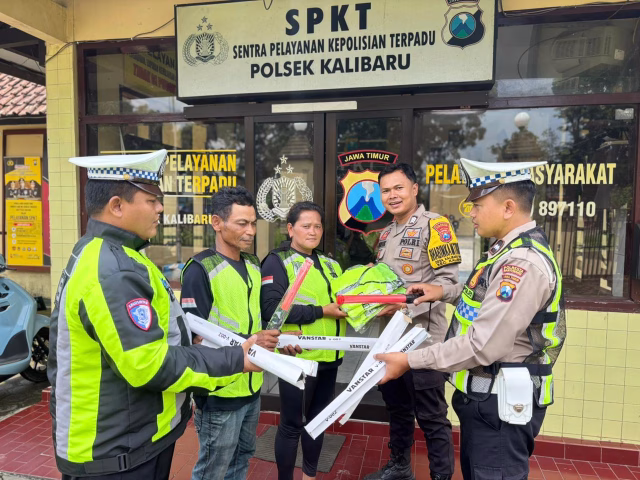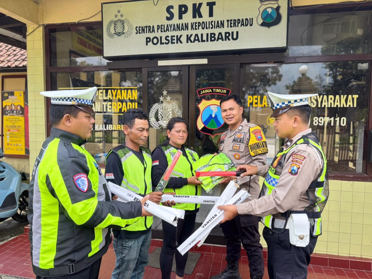 BANYUWANGI – Personel Polsek Kalibaru, di bawah naungan Polresta Banyuwangi, menunjukkan kepedulian nyata terhadap keselamatan pengguna jalan di jalur rawan bencana. Pada Kamis (9/4/2026), jajaran kepolisian menyambangi para relawan di Jalur Gumitir untuk memberikan bantuan sarana prasarana berupa rompi dan senter lantas.