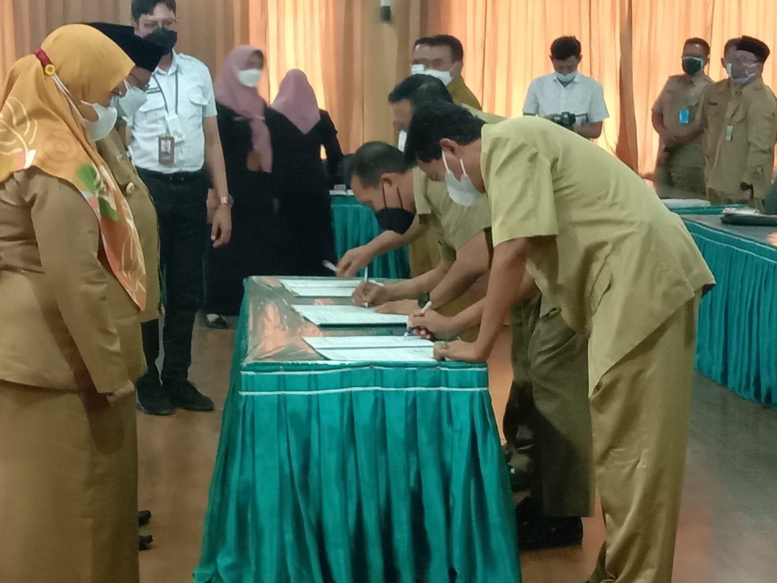 Situbondo – Acara penandatanganan perjanjian kinerja para pejabat tinggi pratama di lingkungan pemerintah kabupaten Situbondo telah berlangsung di lantai dua Pemkab, pada pukul 09.15 wib, Senin, tanggal 30 Agustus 2021.