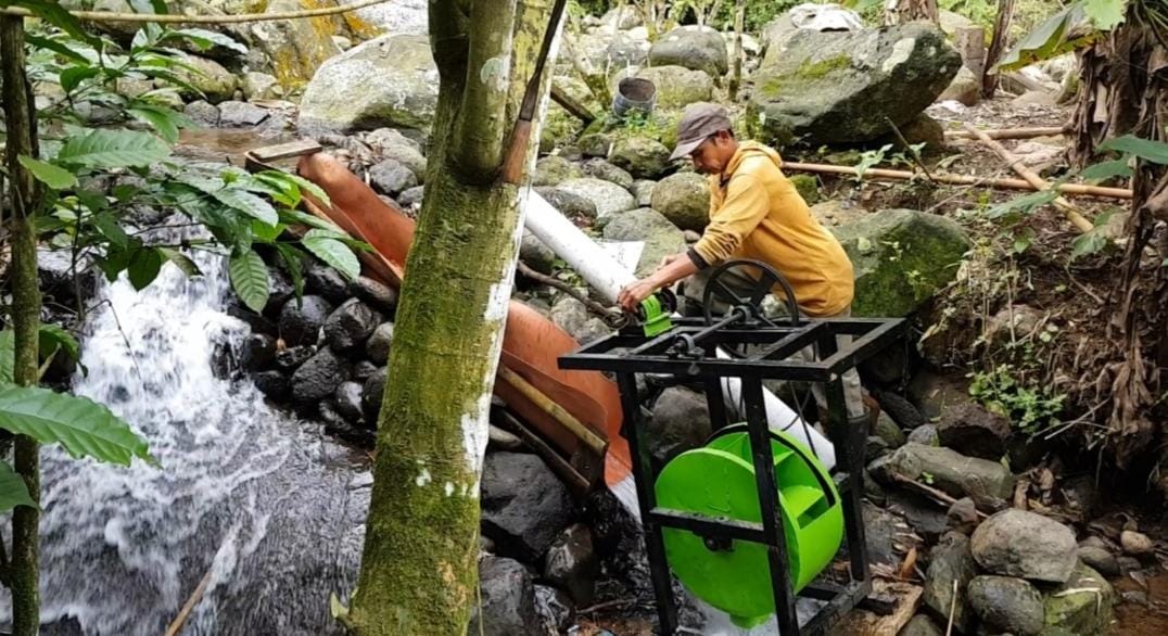 Banyuwangi-Seoarang dosen pendamping Muh. Fuad Al Haris, yang turun langsung ke rumah-rumah warga, Dosen asal Poliwangi ini menambahkan, Pembangkit Listrik Tenaga Mikrohidro (PLTMH) merupakan salah satu alternatif pembangkit listrik skala kecil. PLTMH dapat diterapkan di daerah pedesaan yang tidak memiliki aliran sungai dengan debit yang kontinyu walaupun dengan tinggi jatuh air yang cukup. Arus air inilah yang akan menggerakkan turbin untuk menghasilkan daya listrik skala mikrohidro.