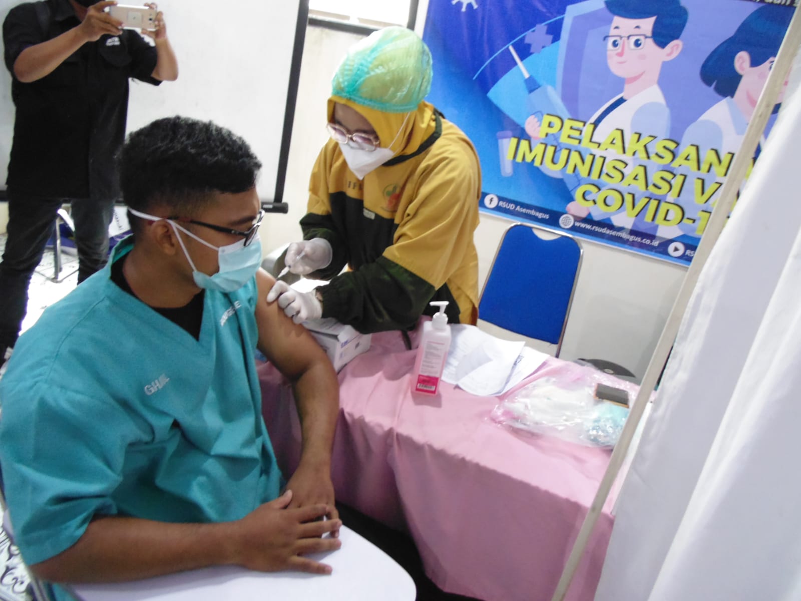 “Di RSUD Asembagus ini ada 260 Tenaga Kesehatan, pada Vaksin tahap l yang tidak bisa divaksin sebanyak 57 Nakes dikarenakan ada penyakit Comorbid dan terkonfrim Covid, ada 6 Nakes skrening tunda serta ada 2 yang belum di skrening. Pada tahap ll ini yang bisa di Vaksin sebanyak 195 Nakes, ada 2 nakes yang tidak bisa di vaksin karena hamil dan yang satunya terkonfrim Covid,” ucapnya.