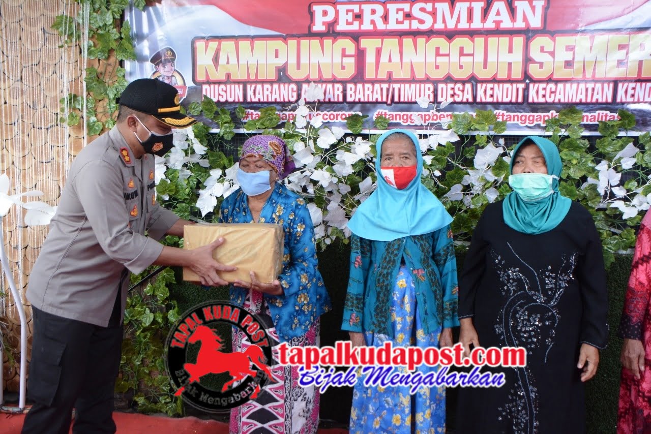 Usai peresmian kampung tangguh semeru (KTS), Kapolres beserta Dandim 0823 Situbondo memberikan bantuan sembako, masker dan handsanitizer dilanjutkan meninjau fasilitas pendukung KTS. (ans/hms)