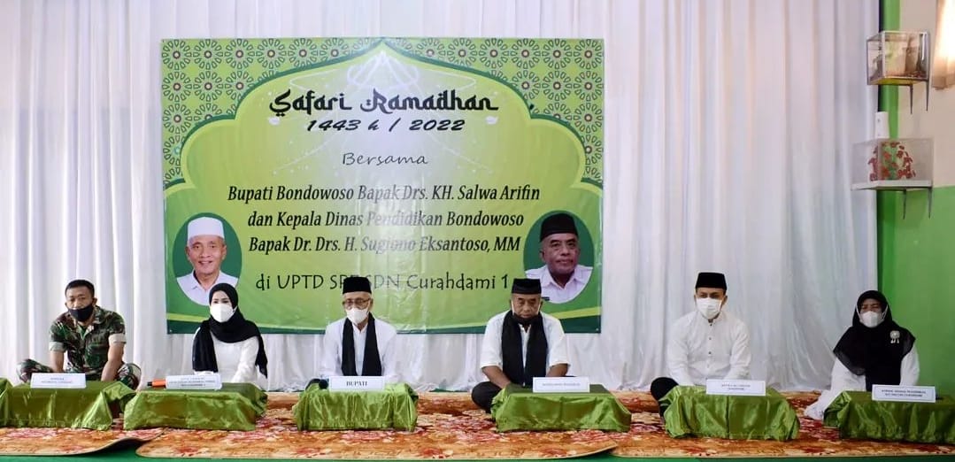 BONDOWOSO – Disambut dengan iringan sholawat kehadiran Bupati Bondowoso, KH Salwa Arifin, bersama kepala Dinas Pendidikan (Kadisdik) Bondowoso, Sugiono Eksantoso, melakukan Safari Ramadhan di UPTD SPF SDN Curahdami 1 , Jum’at (22/04/2022) .