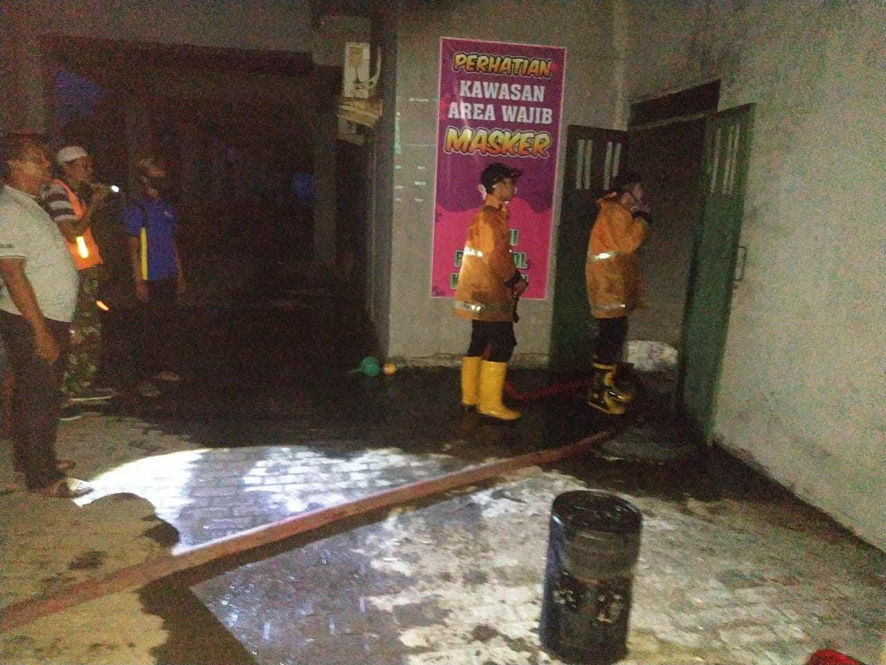 Petugas damkar dan Polsek setempat datang ke lokasi setelah beberapa menit kemudian dan langsung melakukan pembasahan dengan mobil damkarnya yang dibantu oleh sejumlah warga.