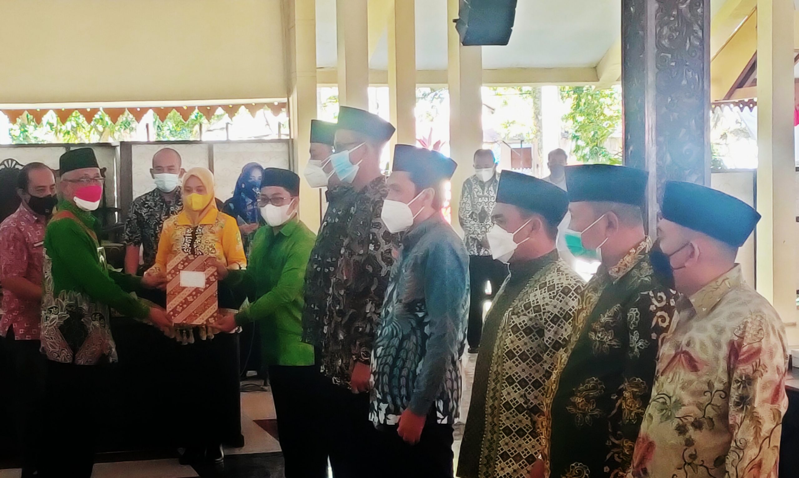 BONDOWOSO – Bupati Bondowoso,KH.Salwa Arifin menyerahkan Surat Keputusan (SK) kepada Tim Percepatan Pembangunan Daerah (TP2D) periode 2021, kepada tujuh orang yang Terdiri dari Ketua, Sekretaris, dan lima anggota di Pendopo Bupati Bondowoso,Jawa Timur, Kamis (26/8/2021).
