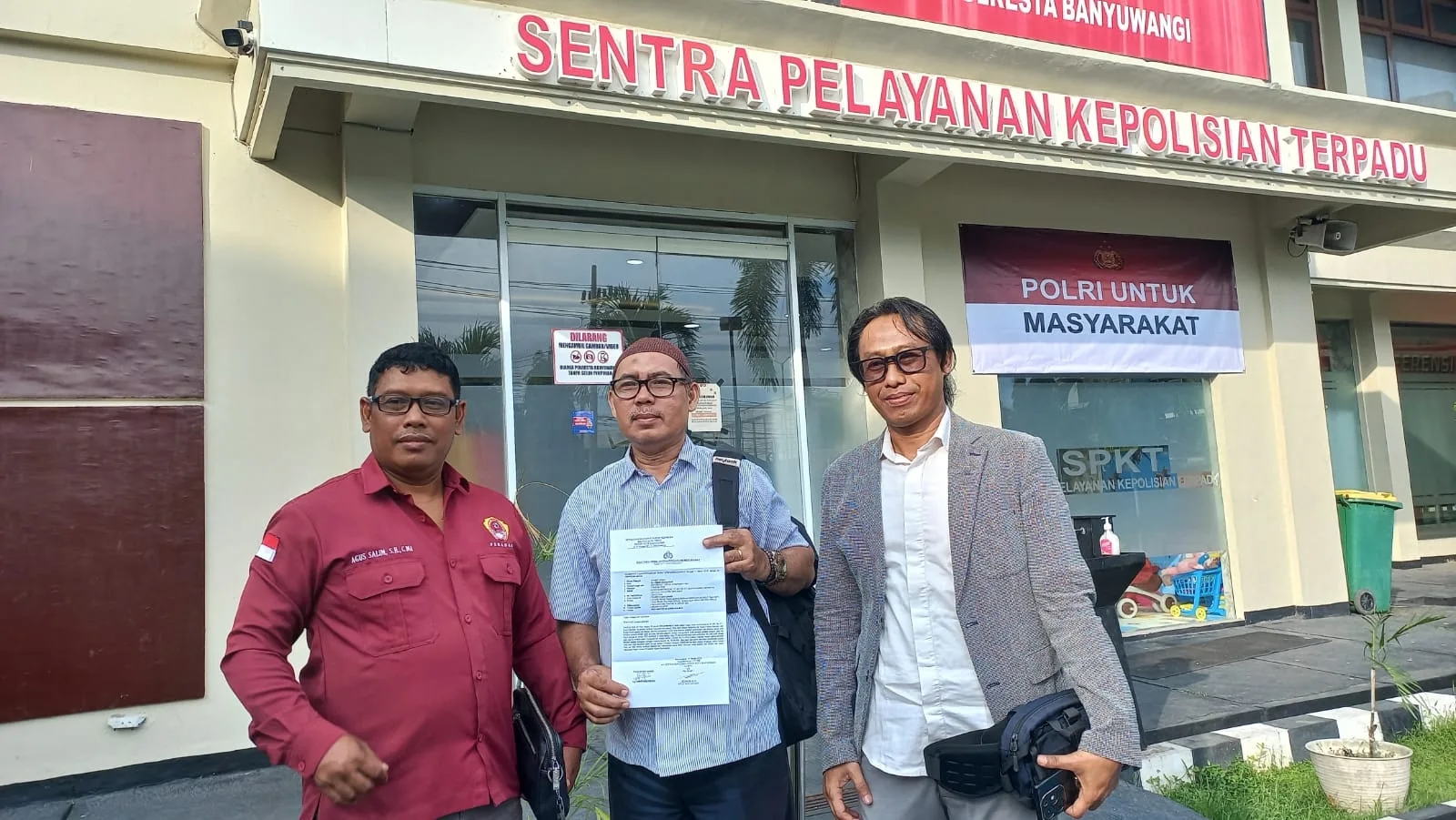 EM membuat laporan dengan membawa sejumlah bukti. Warga Desa Kaligondo, Kecamatan Genteng ini datang ke kantor polisi bersama tiga kuasa hukumnya yakni Agus Salim, Rohman Hadi Purnomo, dan Kurdi Ismail.