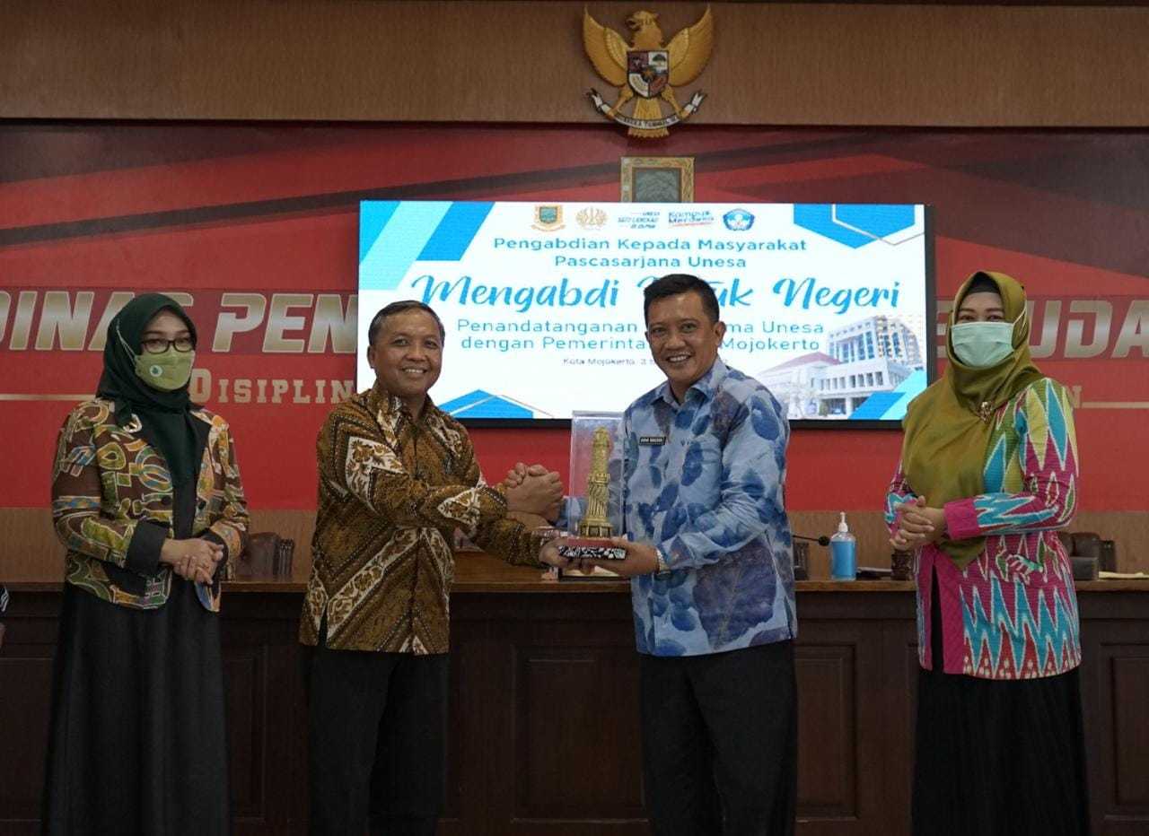 Mojokerto – Pemerintah Kota (Pemkot ) Mojokerto melalui Kepala Dinas Pendidikan dan Kebudayaan (Disdikbud) Kota Mojokerto Amin Wachid menandatangani Memorandum of Understanding (MoU) dengan Direktur Pascasarjana Universitas Negeri Surabaya (Unesa) Prof. Dr. Wasis, M.Si, Sabtu (3/9).