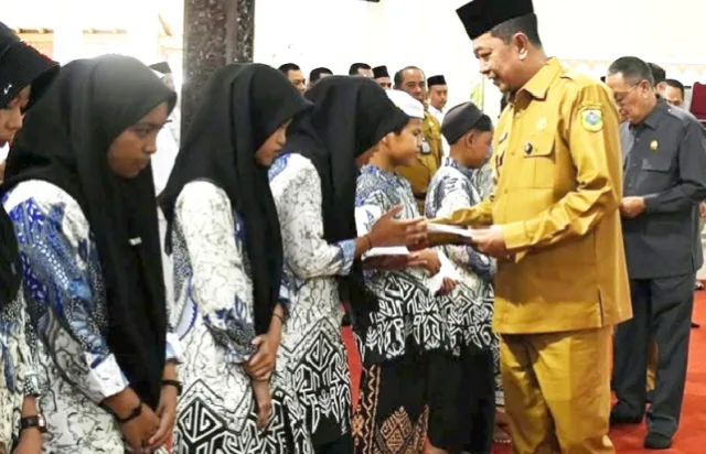 Santunan tersebut diserahkan secara simbolis oleh Bupati dan jajaran pimpinan daerah kepada perwakilan anak-anak yatim yang hadir.