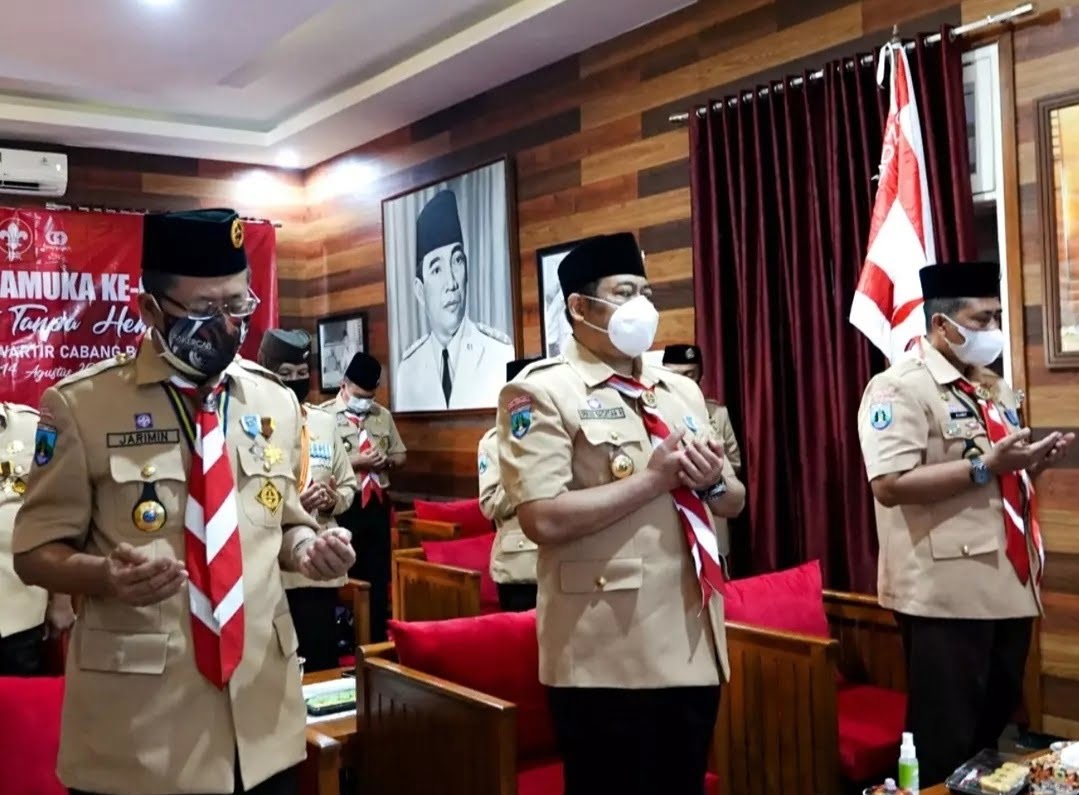 Bondowoso , Puncak peringatan Hari Pramuka dipusatkan wisma wakil Bupati Bondowoso  berjalan cukup sederhana dan khidmad memgingat acara berlangsung saat PPKM Darurat level 4 dilaksanakan secara virtual.