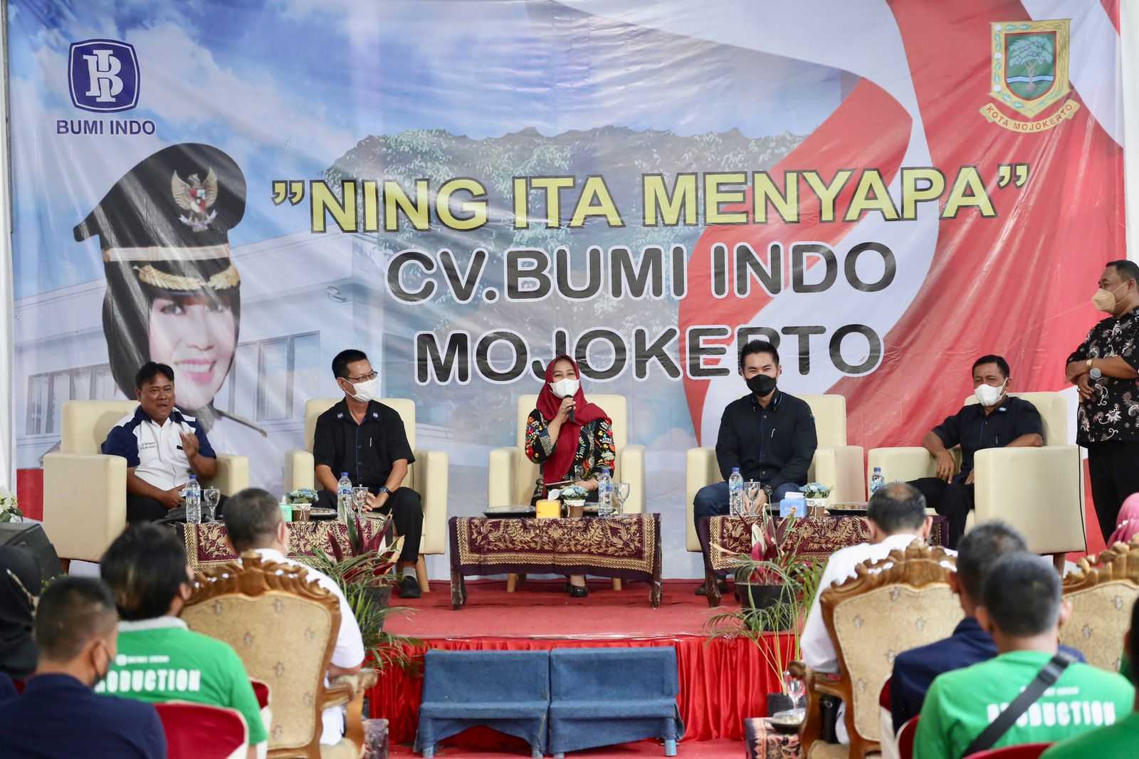 Mojokerto – Wali Kota Mojokerto Ika Puspitasari kembali bersilaturahmi dengan para pekerja sejumlah perusahaan di Kota Mojokerto melalui program Ning Ita Menyapa. Kali ini giliran tenaga kerja CV. Bumi Indo, sebuah pabrik ternak berlokasi di Kelurahan Kedundung, Kecamatan Magersari, Kota Mojokerto, Rabu (28/9) petang.