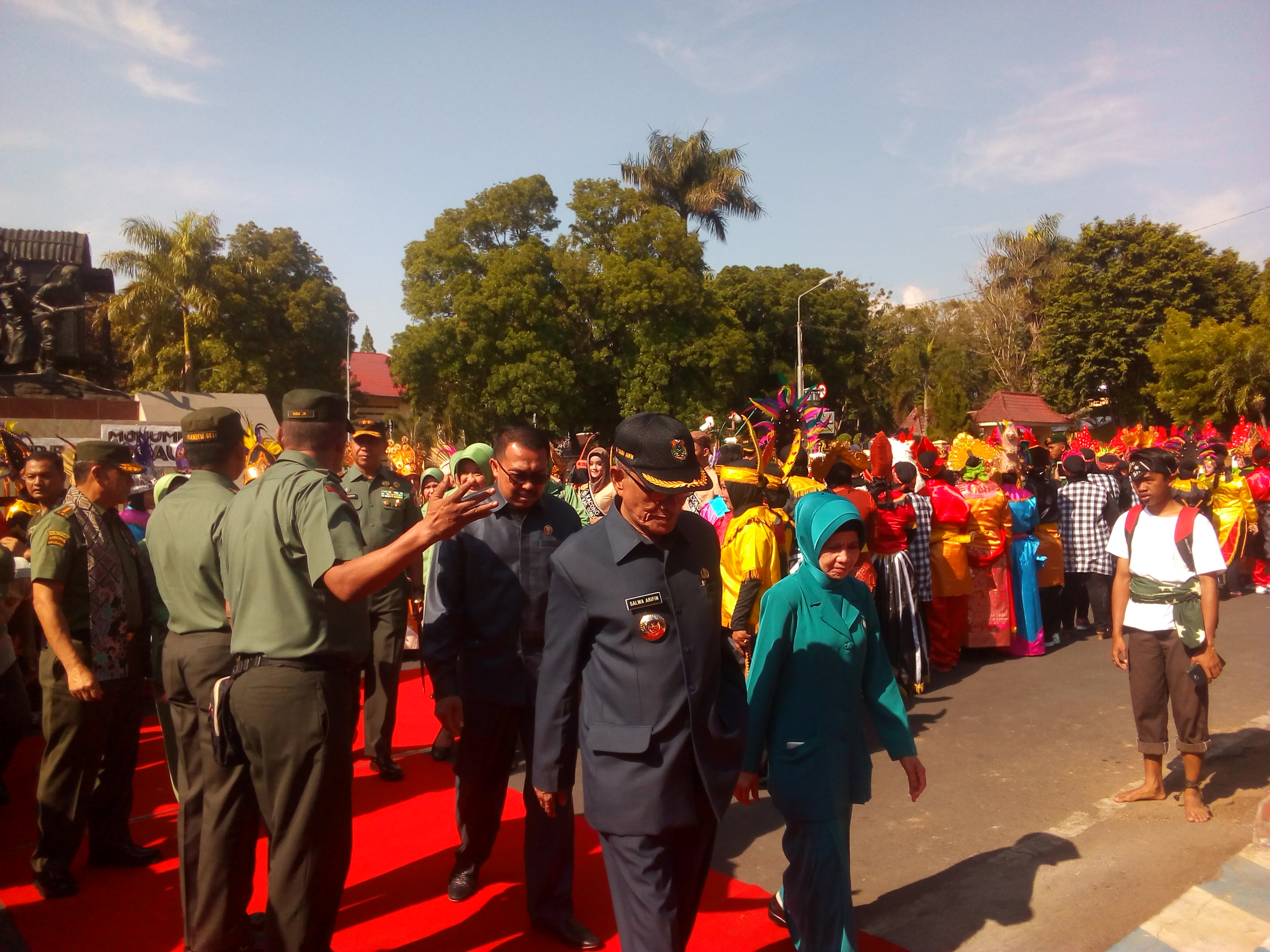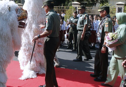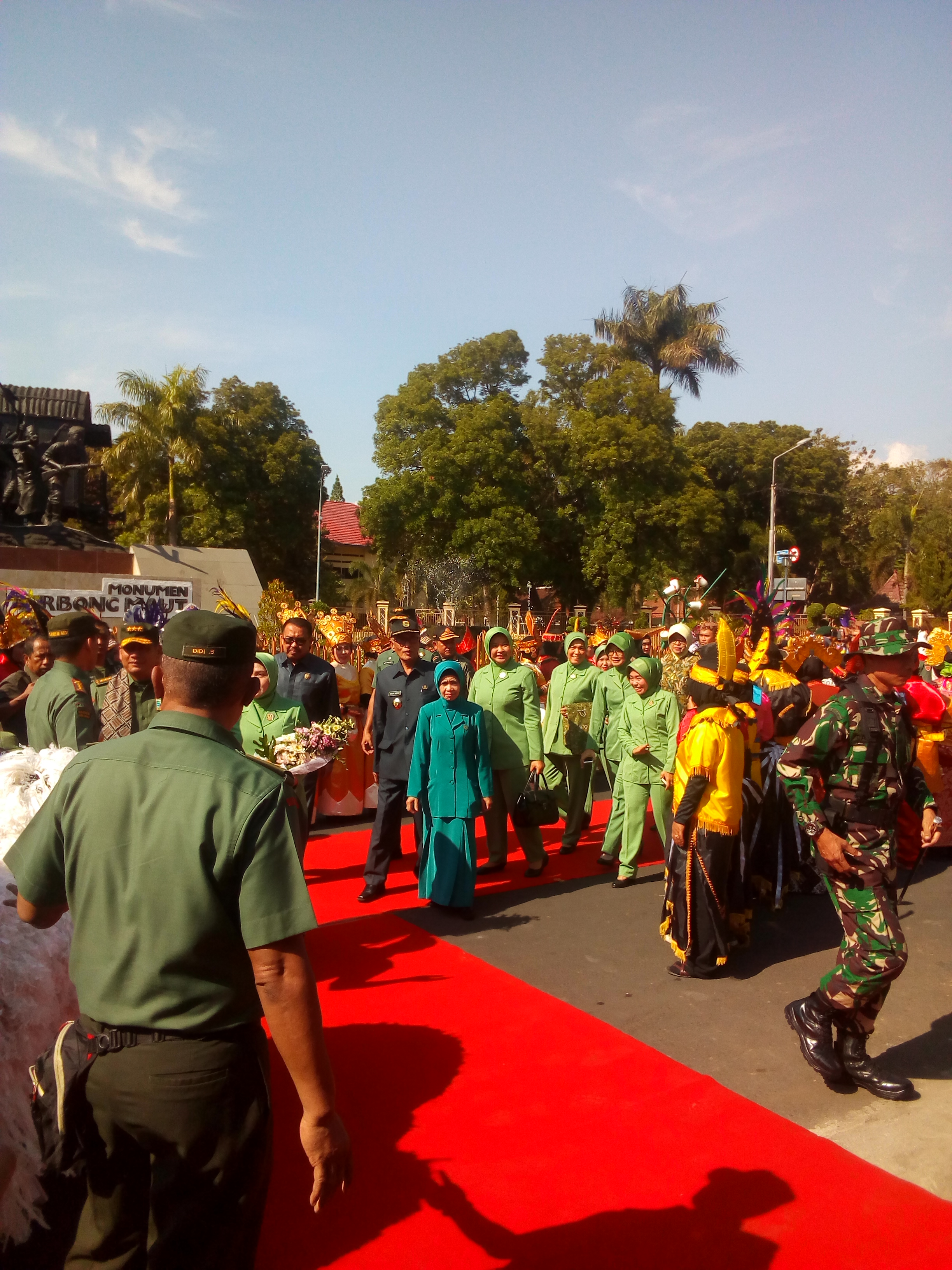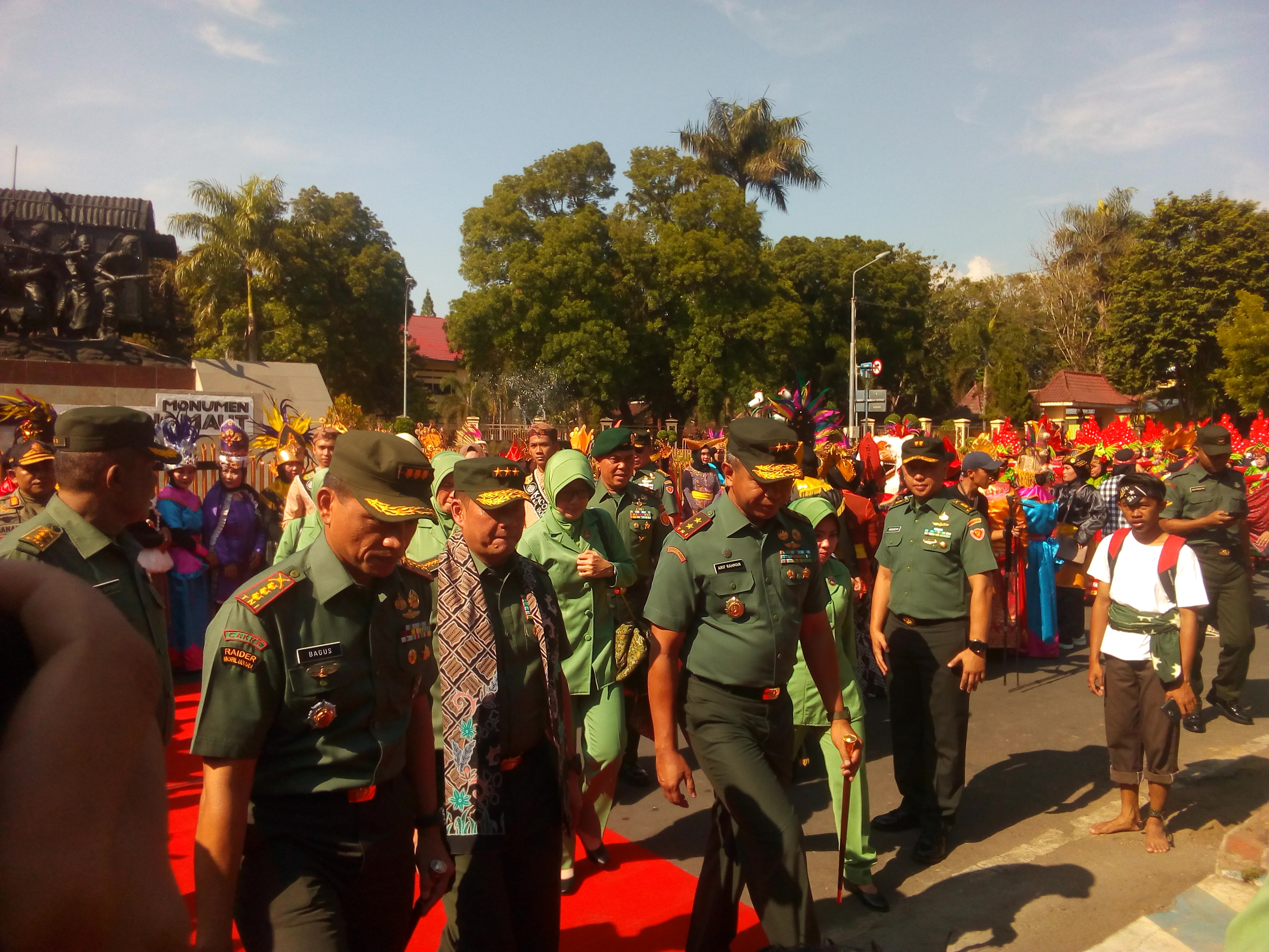 Bindowoso – Red Karpet tehampar menyambut kedatangan Wakil Kepala Staf Angkatan Darat (Wakasad) Republik Indonesia Lenan Jendal TNI Tatang Sulaiman di Bumi Kironggo dalam penutupan TMMD 103 Kodim 0822 Bindowoso ,Jawa Timur Tiba di alun-alun Raden Bagus Asra Kironggo